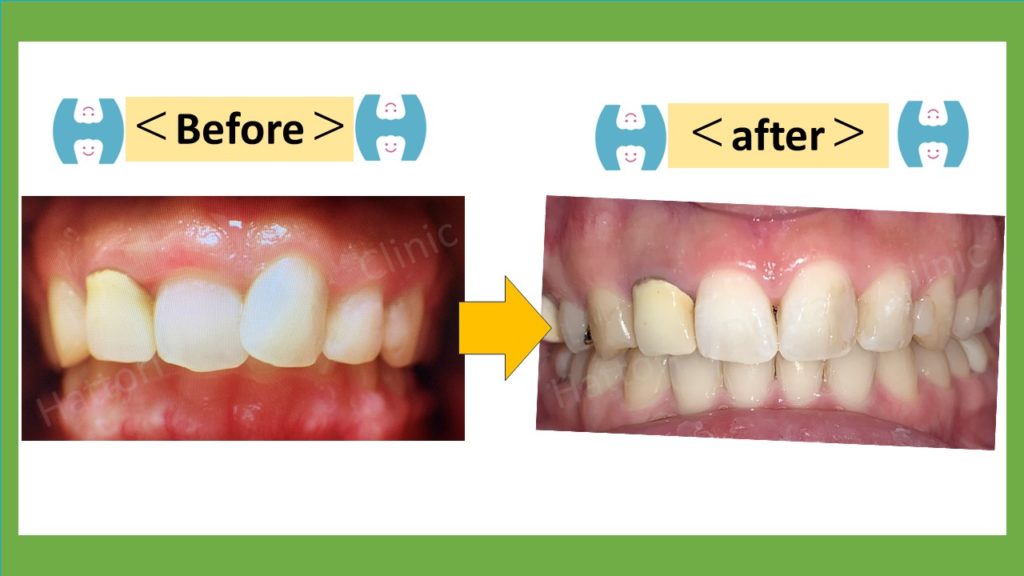 治療:両側の上顎の4番目の歯を抜歯し、ワイヤーを用いて治療